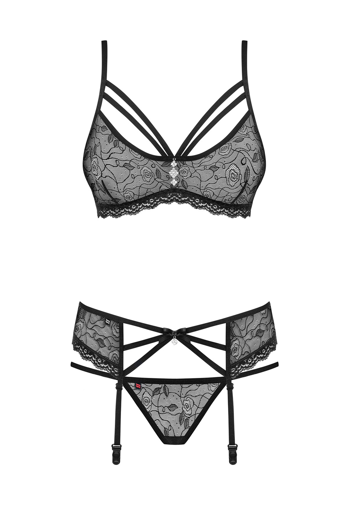 - Sexy 3-teiliges Set bestehend aus einen String, BH und Strapsgürtel